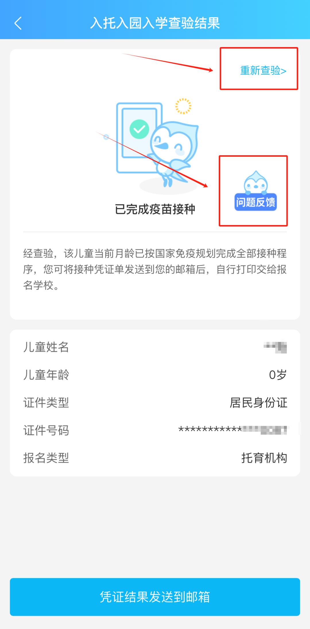 1. 显示“已完成疫苗接种”:恭喜您查验通过啦!可通过邮箱接收电子“预防接种查验凭证”后自行打印交予报名学校查验留档。