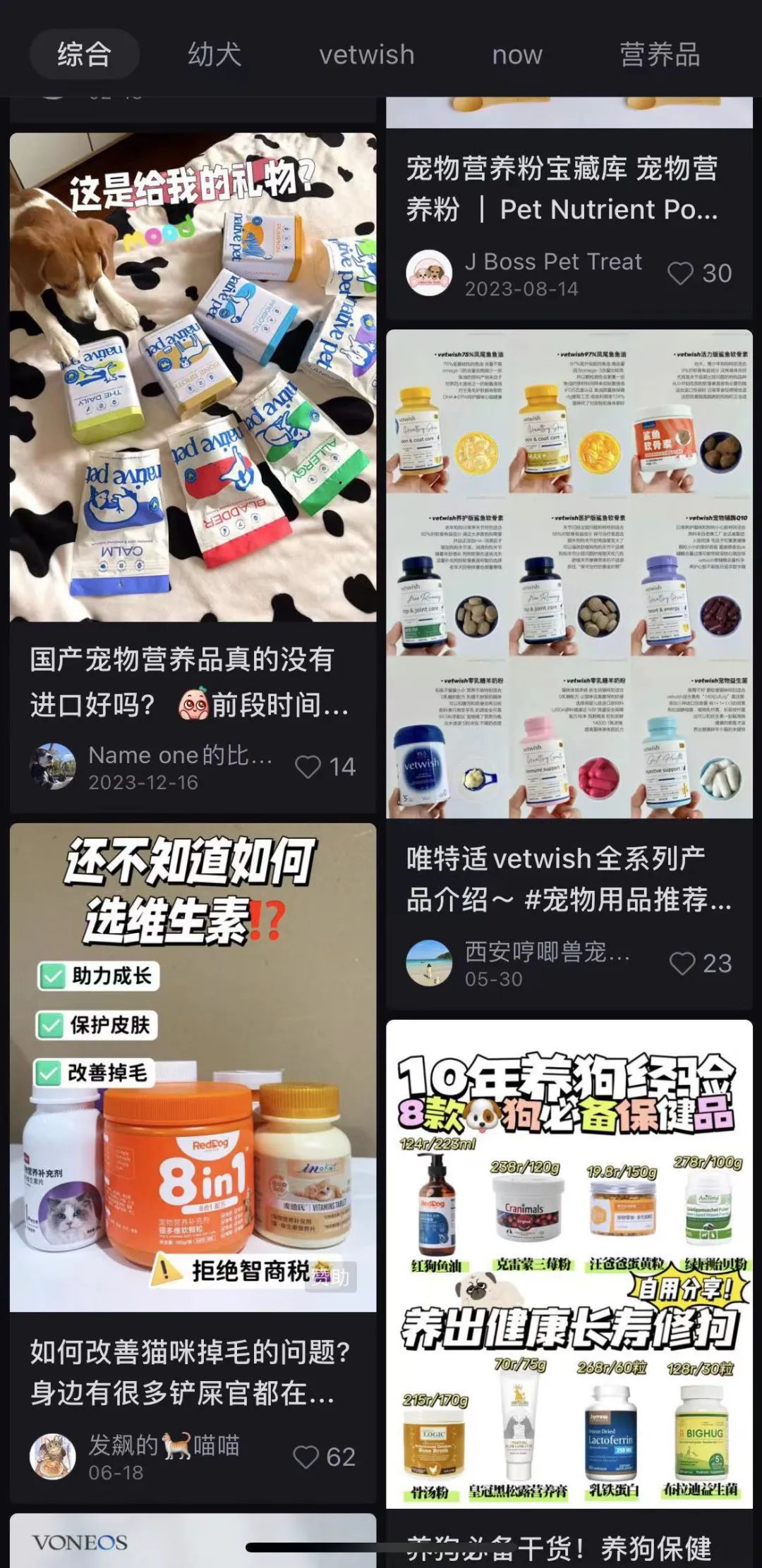 小红书上充斥着各种宠物保健品帖子。(图/网络截图)宠物保健品市场固然火热,但与人类保健品类似,相关的争议从未停止。