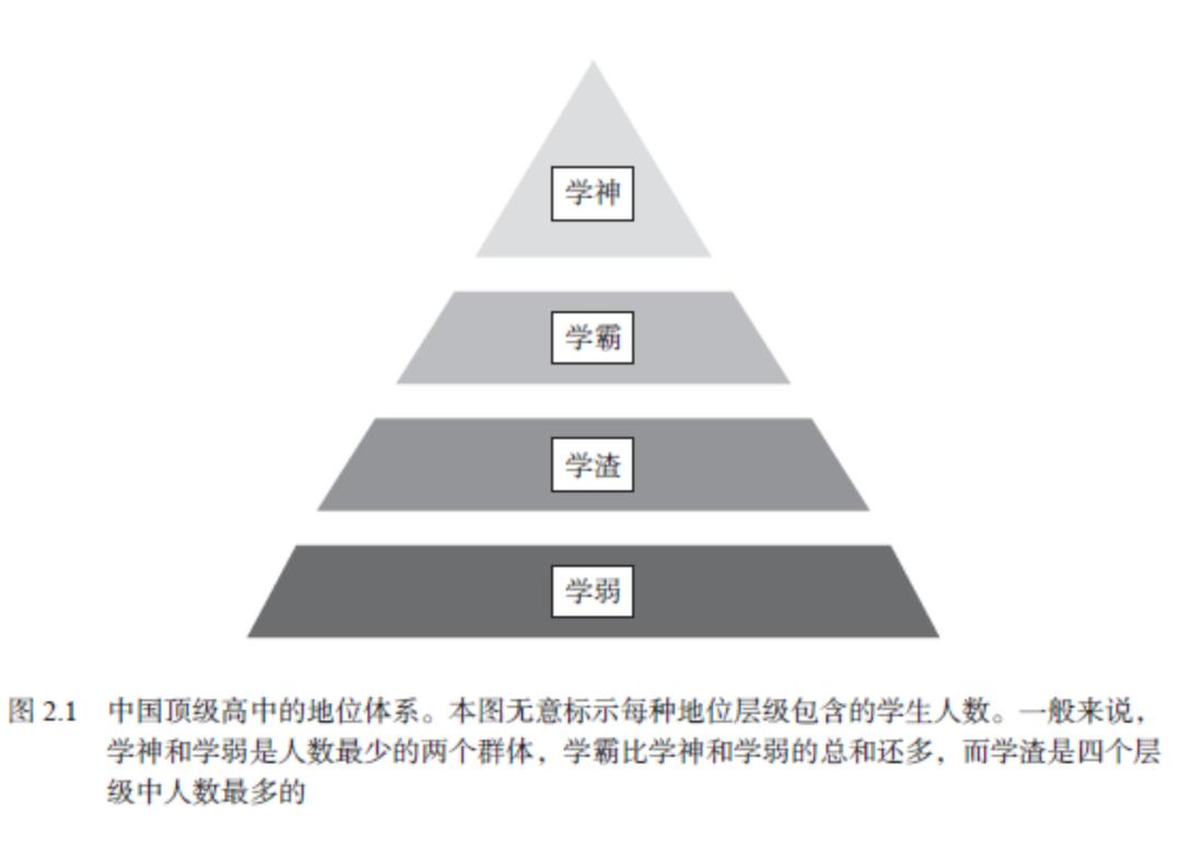 该层级结构的顶端是学神,也就是那些不太用功就能得高分的人。学神是很稀少的,也并非平均分布在各个学校、年级和学部。不论哪所学校,同一年级的高考生或出国生中,学神的数量往往都超不过五个,有时甚至一个都没有。欧米伽中学以学神多而著称,罗伯特对此事的总结十分到位:“欧米伽肯定有一群学神,从入学新生就能看出来,他们把全北京最优秀最聪明的都挑走了。”