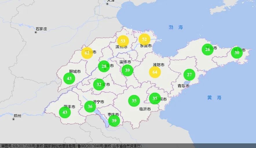 处于弱气压场,风速较小,大部地区气温较高,东南部地区可能有降水。预计,半岛、鲁东南地区以良至轻度污染为主,其他地区以轻度污染为主,个别城市可能达到中度污染,首要污染物为O₃。