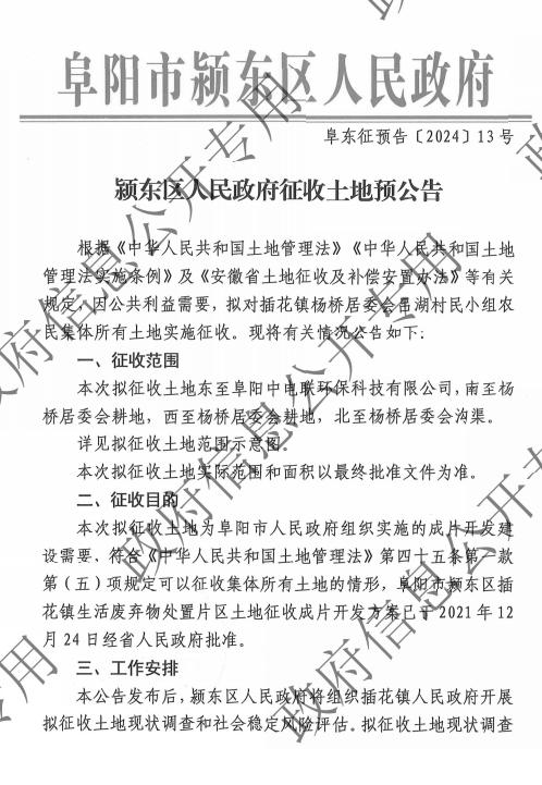 颍东区人民政府征收土地预公告(2024-35)