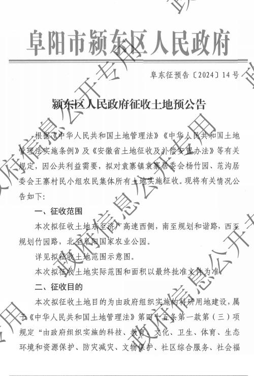 颍东区人民政府征收土地预公告(2024-34)