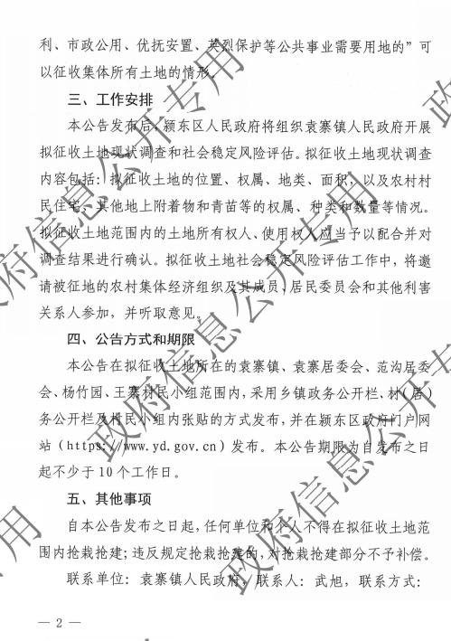 颍东区人民政府征收土地预公告
