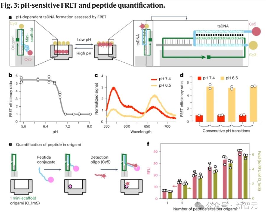 但当pH值降至6.5(癌组织中典型的 pH 值)时,「致命开关」被触发,DNA结构展开,露出细胞毒性配体。然后,配体将死亡受体聚集在癌细胞表面,引发细胞凋亡或程序性细胞死亡,产生剧烈的细胞杀伤效果。