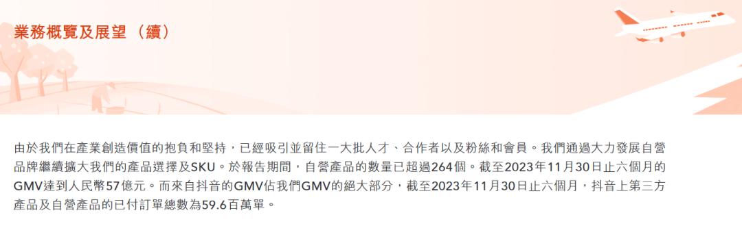 东方甄选财报显示,截至2023年11月30日止的六个月内,其自营产品数量超过264个;GMV(成交额)达到57亿元,来自抖音的GMV占“绝大部分”。与此同时,“三费”均呈现不同程度的增长,其中销售与营销开支达到5.6亿元,同比增长145.6%。