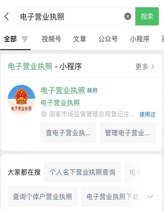 咱们可以通过“电子营业执照”微信小程序,轻松查询作为股东(出资人)、担任法定代表人或高管人员等登记信息。