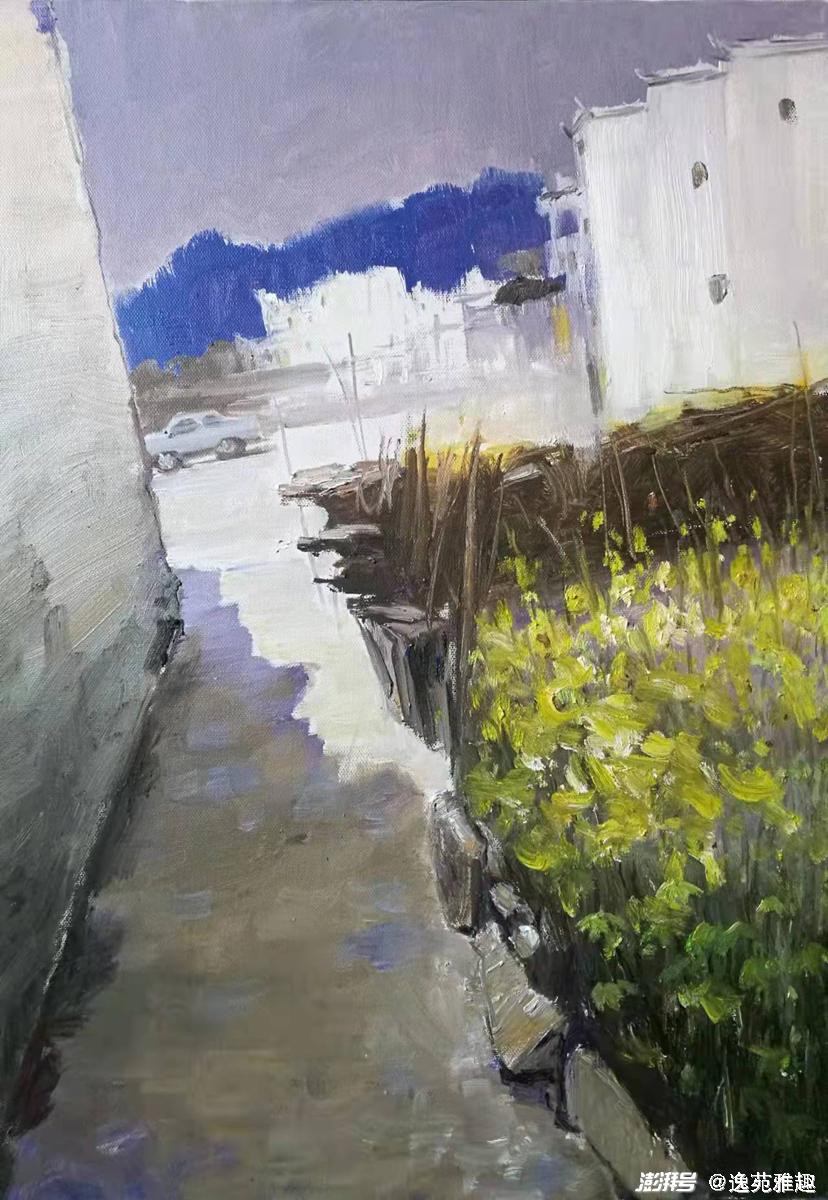 邱野先生的油画作品,宛如婺源水墨的再现。他捕捉了婺源的静美与古韵,荷叶倒影、青石巷陌,皆成画中诗。每一笔都饱含深情,每一色都映照着婺源的恬淡与宁静。欣赏其作品,如同漫步于婺源的幽巷与田间,感受那唯美而舒心的艺术世界。