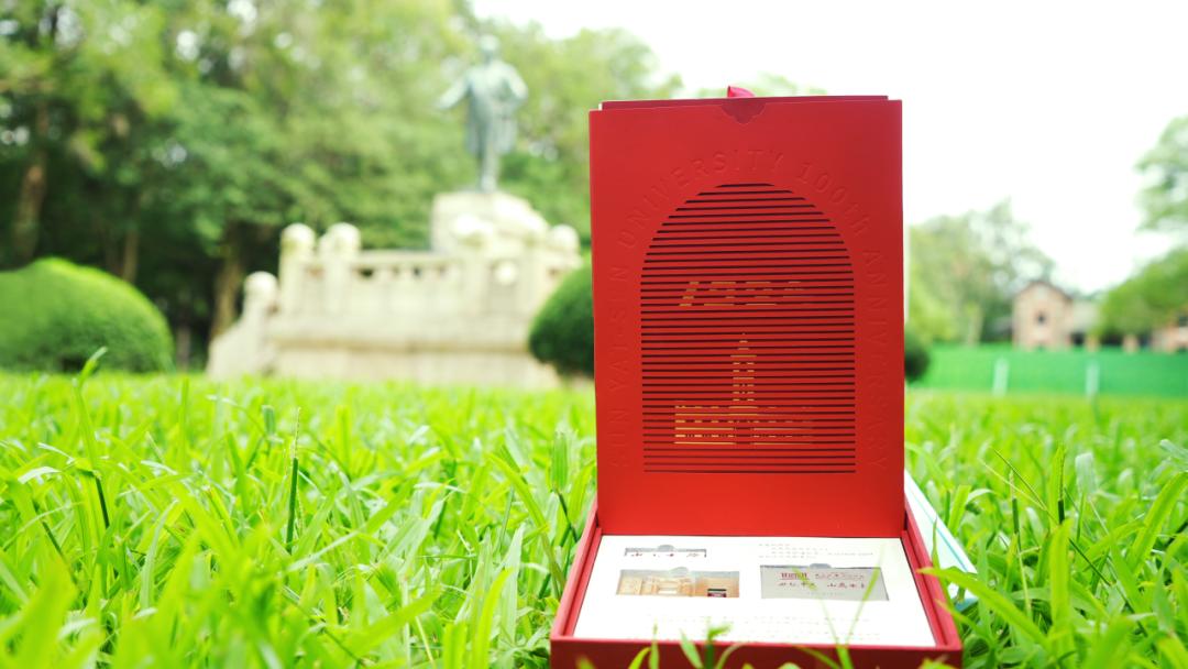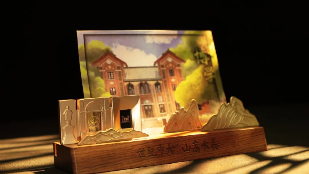 “世纪中大,山高水长”的烫金字样