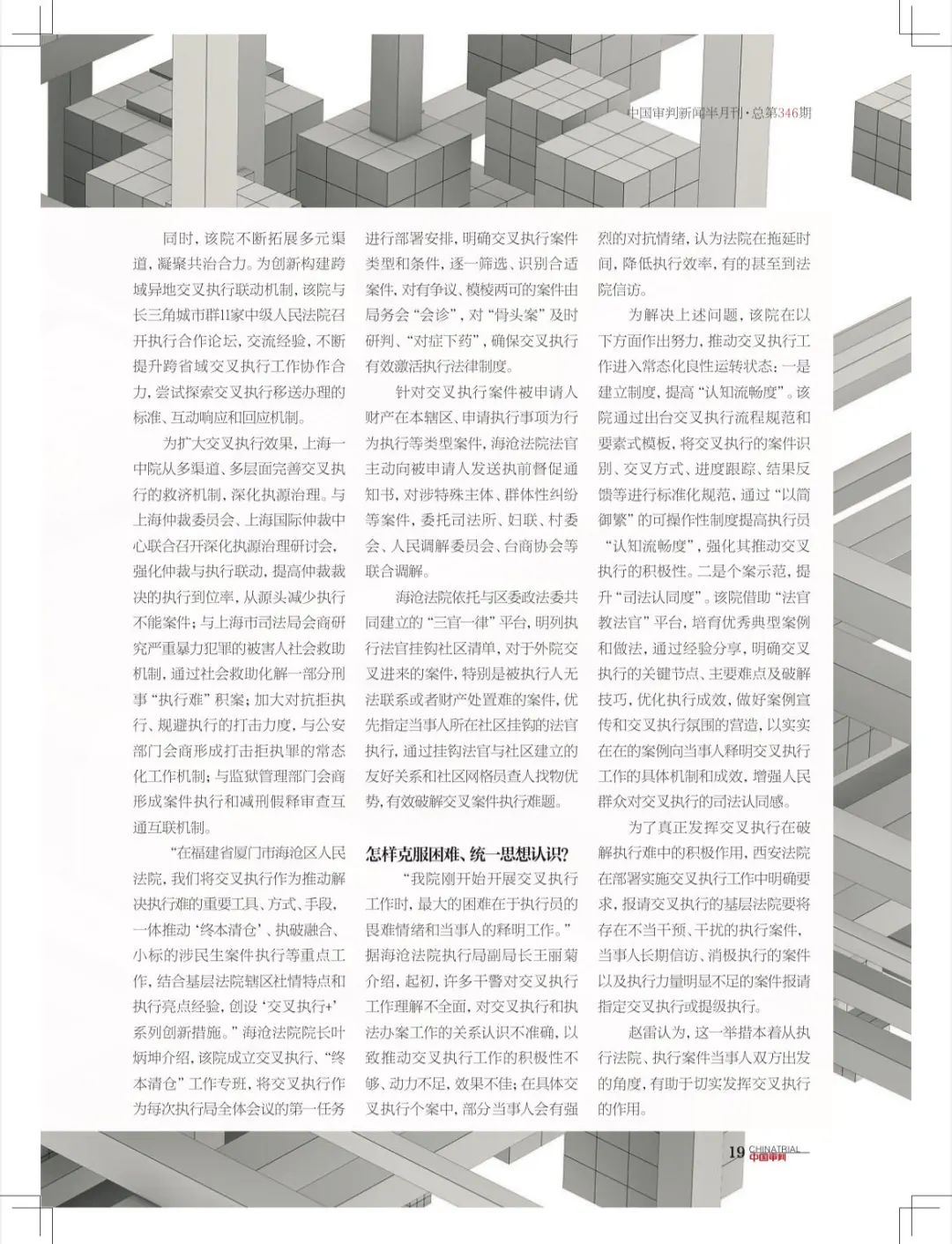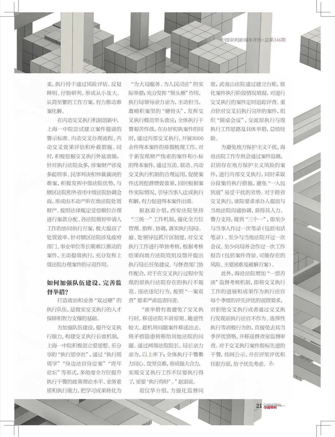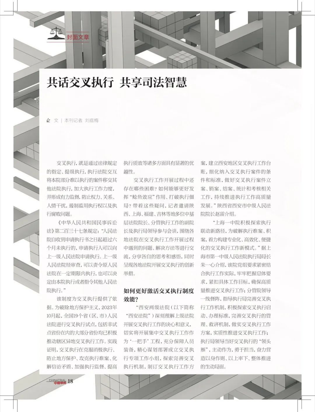原标题:《媒体聚焦 | 西安法院“交叉执行”创新举措被《中国审判》报道》