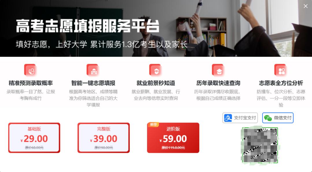 今年,教育部面向高考生免费开放了“阳光志愿”信息服务系统。据悉,其基于招生、就业、调查、测评等大数据,结合深度专业和职业解读,拥有提供志愿推荐、专业介绍、心理测评、就业去向及前景查询等服务。