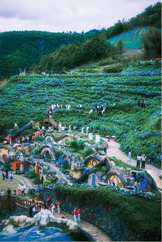 在文泰高速筱村出口处,依托一座漫山遍野的绣球花海,巾帼共富工坊筱村公社乡村文旅项目再次火爆出圈,成为小红书热推的夏天观花游玩必去的地方之一,不仅为筱村镇村民提供了丰富的就业岗位,拓宽了村民增收致富的渠道,更展现了泰顺艺术乡村建设的独特魅力,为乡村旅游发展开辟了一条崭新的道路。