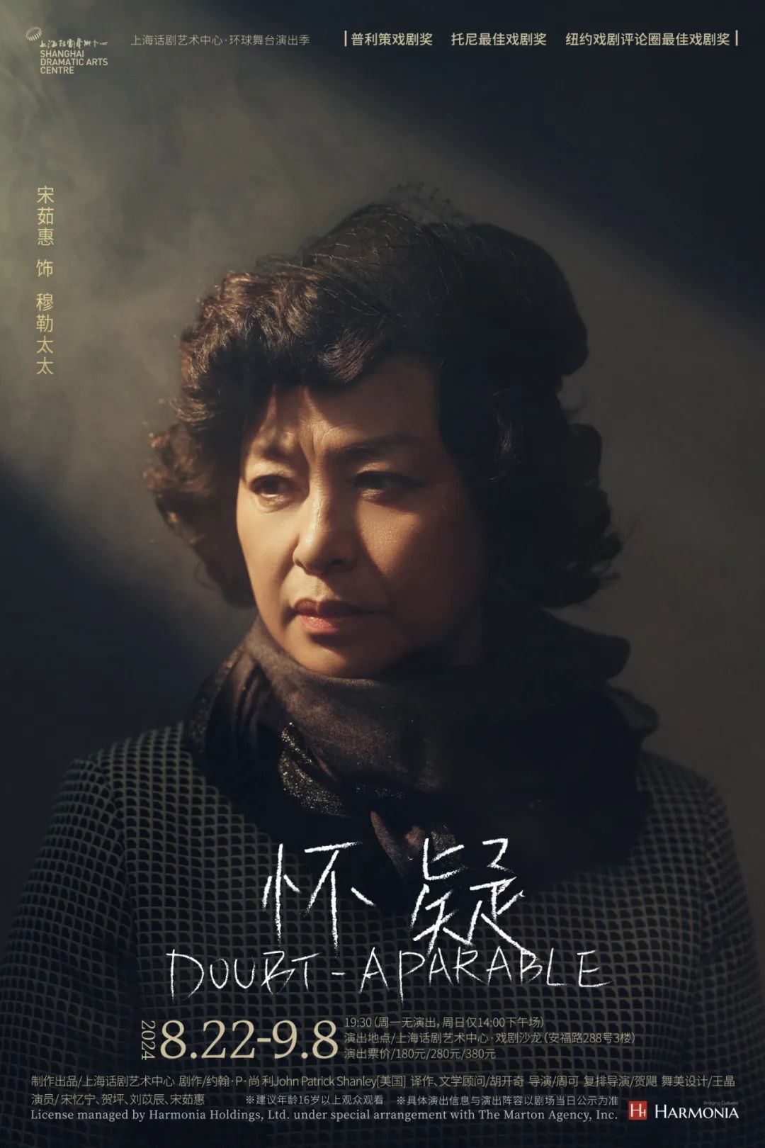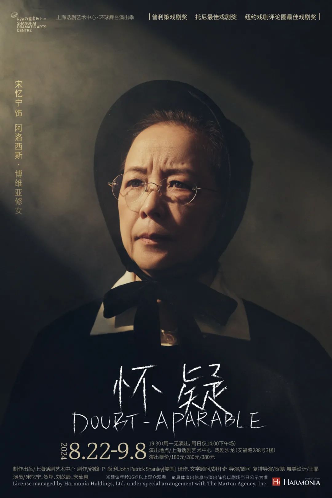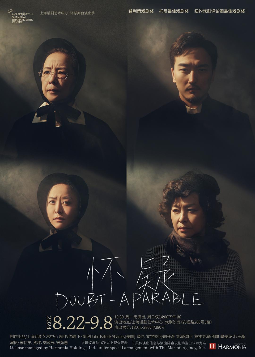 2024年8月22日-9月8日,由美国著名编剧约翰·P·尚利(John Patrick Shanley)编剧,胡开奇翻译,周可执导,贺飓担任复排导演的《怀疑》将再度上演于上海话剧艺术中心·戏剧沙龙。