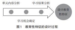 教育性特征的设计,一方面要体现学科特色,涵盖学科主题(如从科学主题和科学探究的角度进行设计);另一方面,要依据一定的程序和过程,以保证规范性。一般来说,教育性特征具有较高的内容依赖性和认知依赖性,需要综合考虑单元内容特点,以及与之相对应的学习机会和学习结果。因此,科学学科教育性课程材料的设计应结合科学教师的教学实践现状,通过分析课程单元的内容体系和目标要求,确定它们能为学生提供的学习机会再结合对学习结果的分析,最终设计出相应的教育性特征,其基本过程如图1所示。