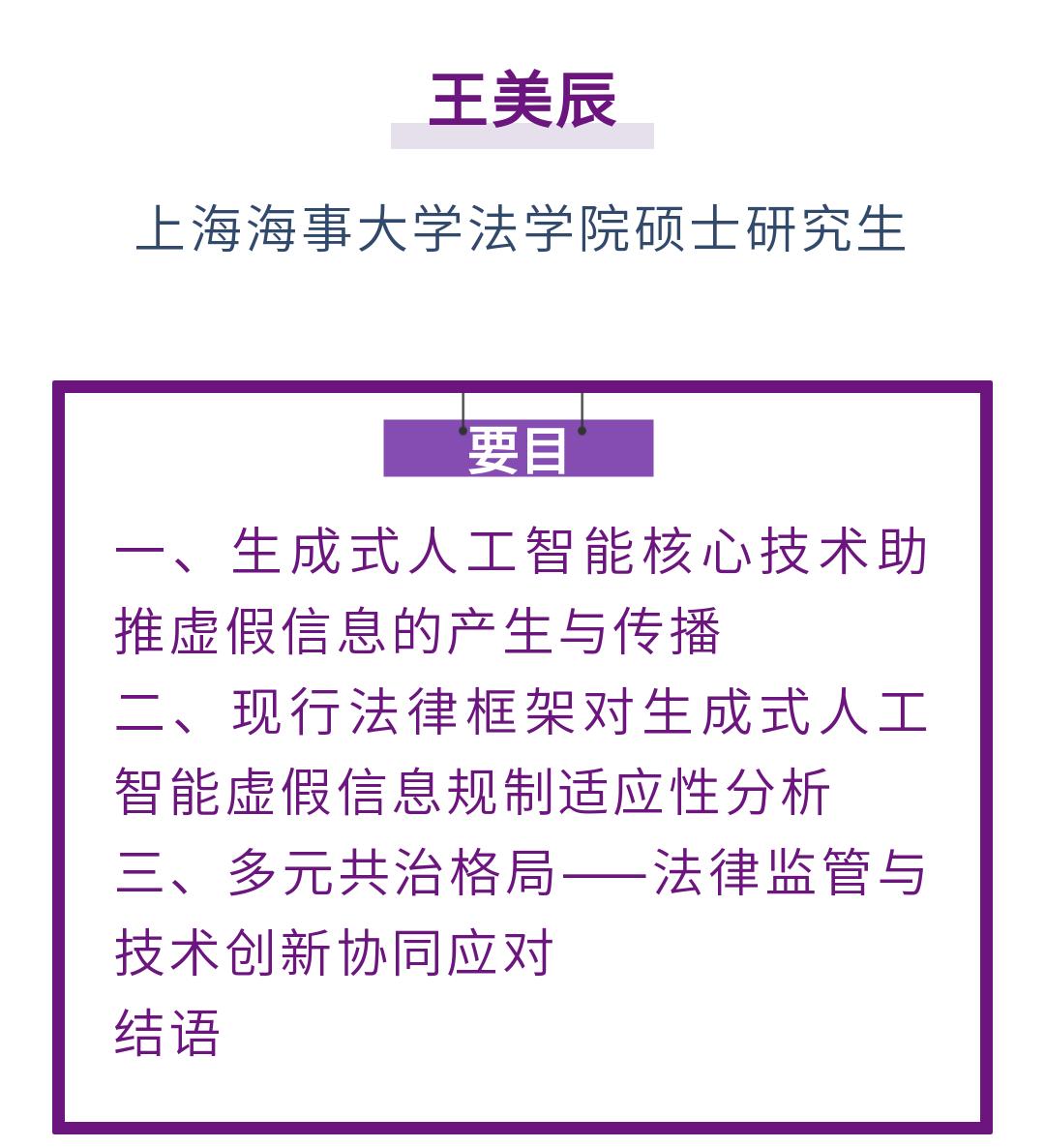 原标题:《王美辰|生成式人工智能助推虚假信息泛滥的法律问题分析——以“Deepfake”为例》