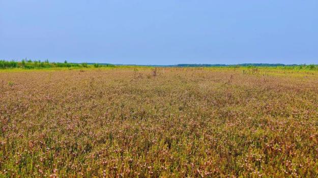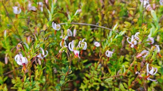 在抚远红海植业蔓越莓基地的蔓越莓田中,淡粉色的花朵竞相绽放,娇艳欲滴,形成了一片绚丽的花海,空气中弥漫着淡淡的清香。