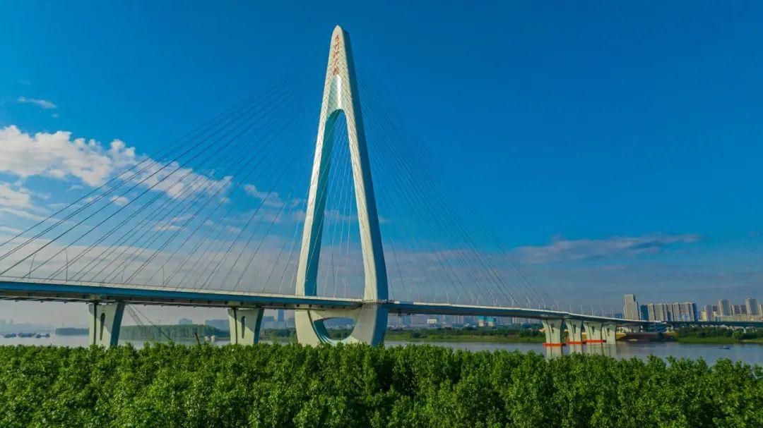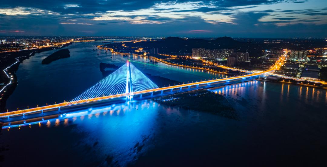 像一条“蓝白”长龙横卧江面