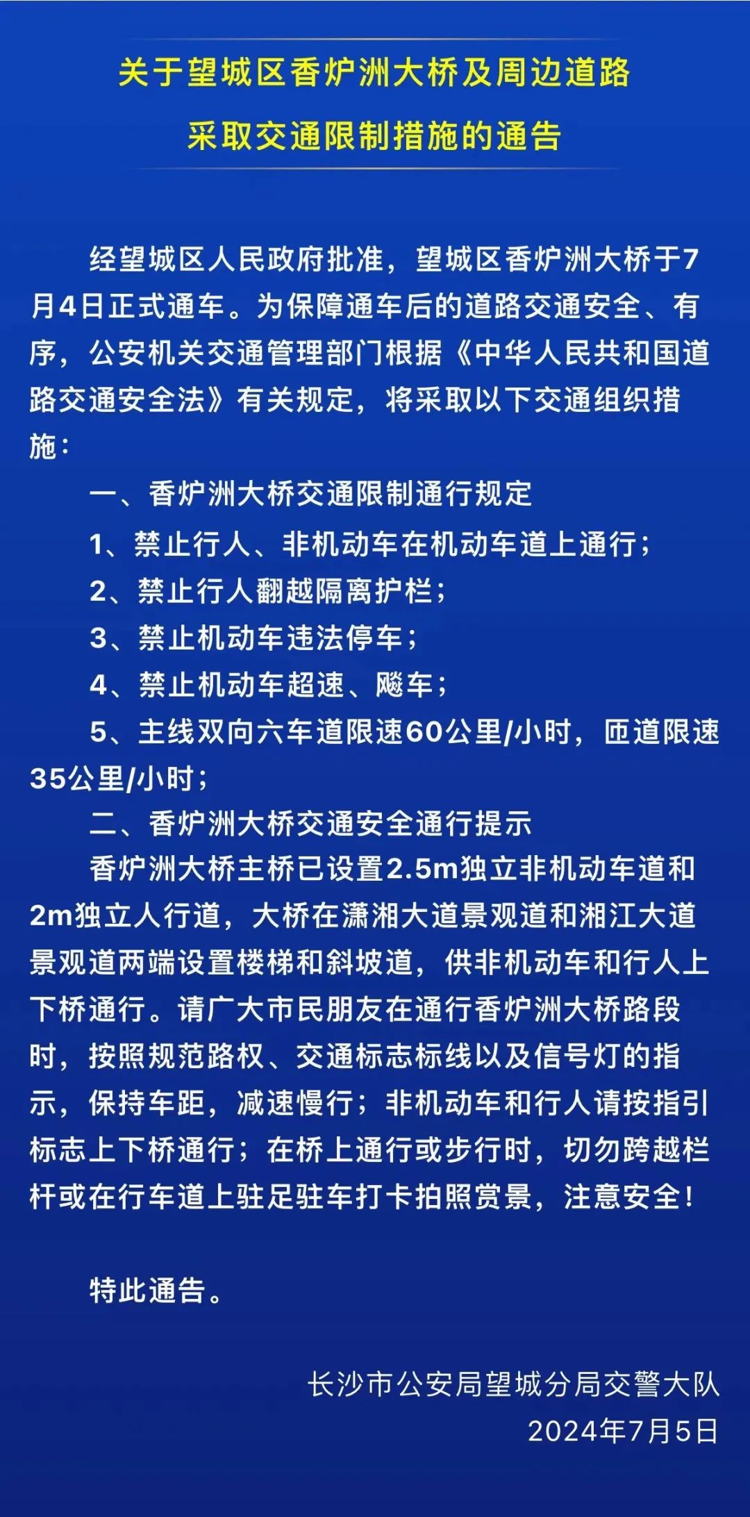 以上交通限制措施于2024年7月5日起实施。
