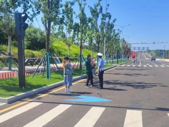 ▲天心交警大队民警为前来打卡的游客提供帮助。交警提醒