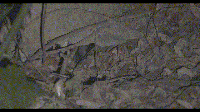 今年4月26日深夜至4月27日凌晨,布设在狗獾洞口附近的监控摄像头拍到了珍贵的画面,一只狗獾反复试探后,钻出了洞穴,用鼻子四处嗅探,并不时将头拱入落叶堆中觅食。它的身后,另一只狗獾显得十分羞涩,只是好奇地向外张望,却迟迟不敢离开洞穴。