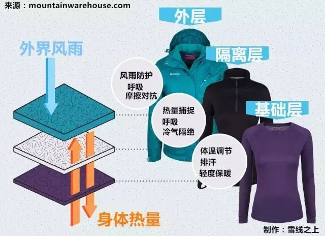 雨衣一定要带!即便你的冲锋衣有不错的防水功能,也有可能在长时间的雨雪浸泡、背包的重压下“失灵”。雨衣是阻挡风雨的利器,冰雪环境也能派上用场,还具有一定的防风保暖作用。