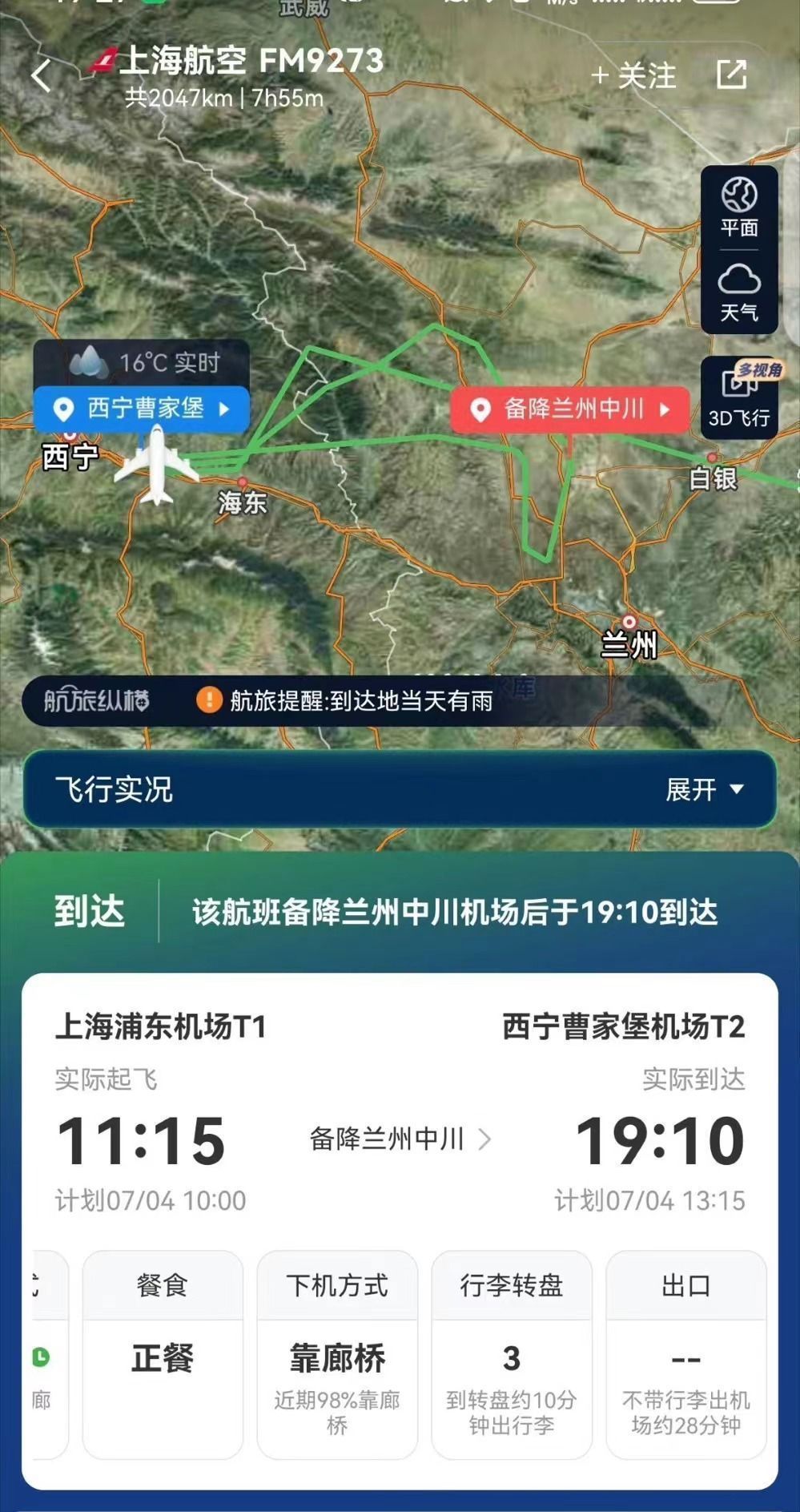据段先生介绍,协商解决方案时,在他们的再三要求下,东航工作人员才同意帮他们打车前往目的地。最终,他们于19时左右乘上网约车,22时左右抵达目的地西宁。