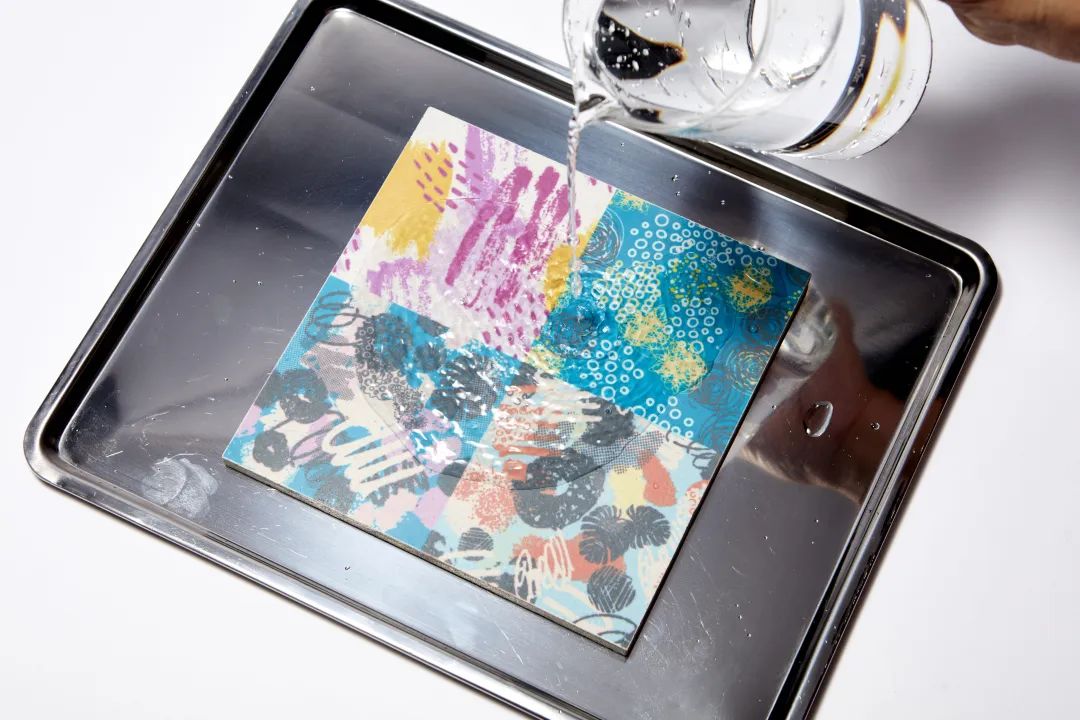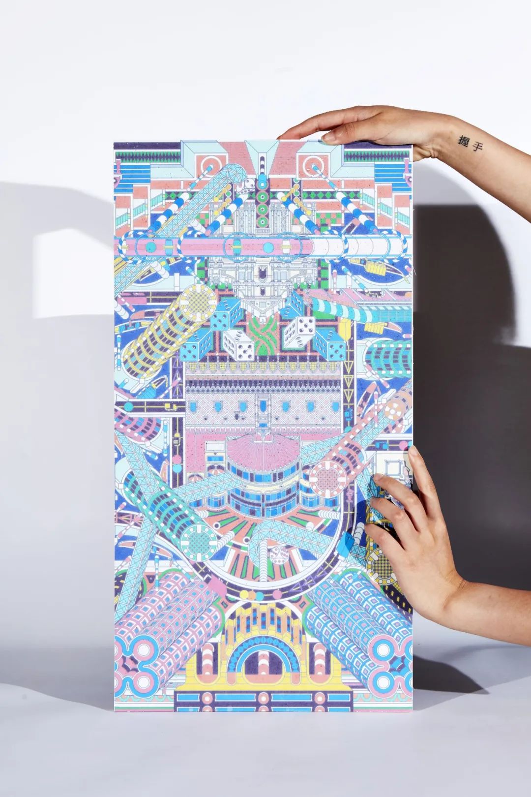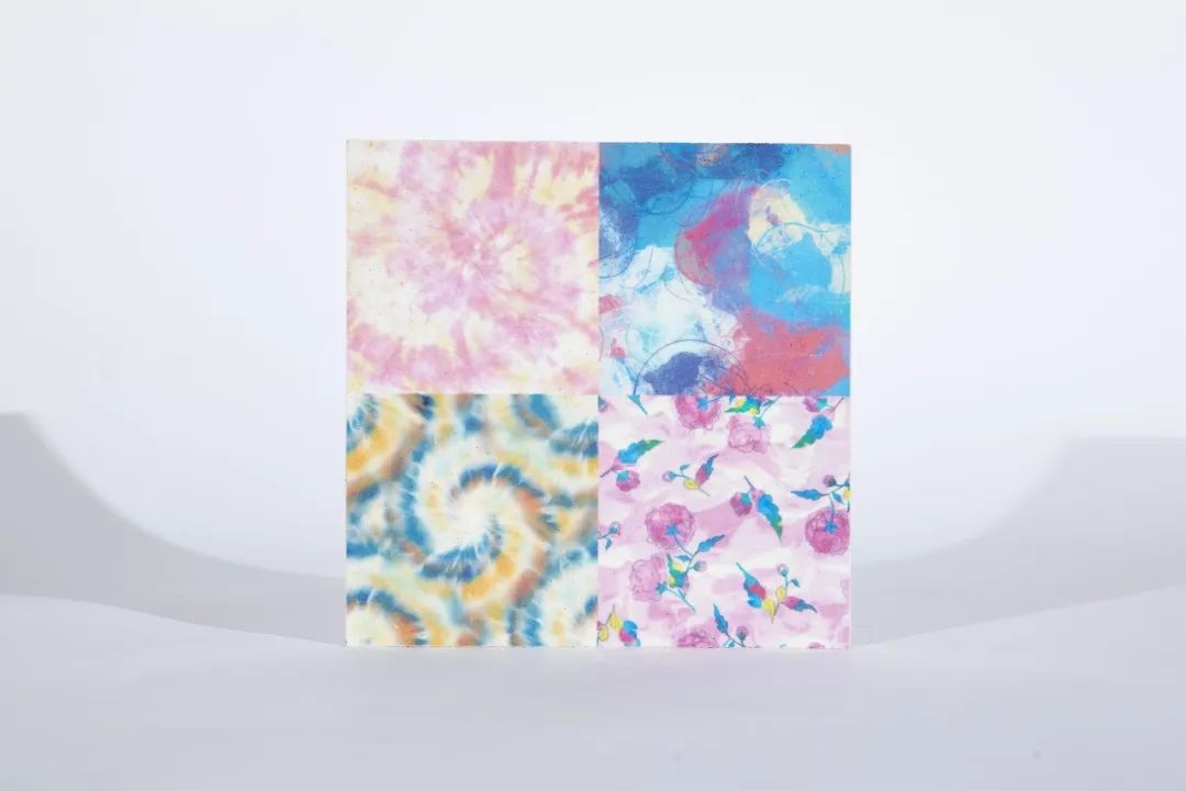 多彩花色艺术图案图像的呈现必须借助于媒介,纸是最常见的媒介之一,借助打印机器、丝网印刷、热转印/水转印和银盐冲洗的技术也可以呈现在不同的媒介上,玻璃、金属、木材、石材、塑料、布料这些材料都有了表现的可能。而清水混凝土“花艺砖”是利用油墨渗透的原理在混凝土表面下成像,就像一滴咖啡,一滴红酒被渗透到了混凝土表面,为了呈现一幅完整的图案或图像,我们需要对油墨和覆着的膜进行特殊处理,同时还需对混凝土材料的配比进行严格的控制,才能在制作过程中确保图案图像边界的清晰。
