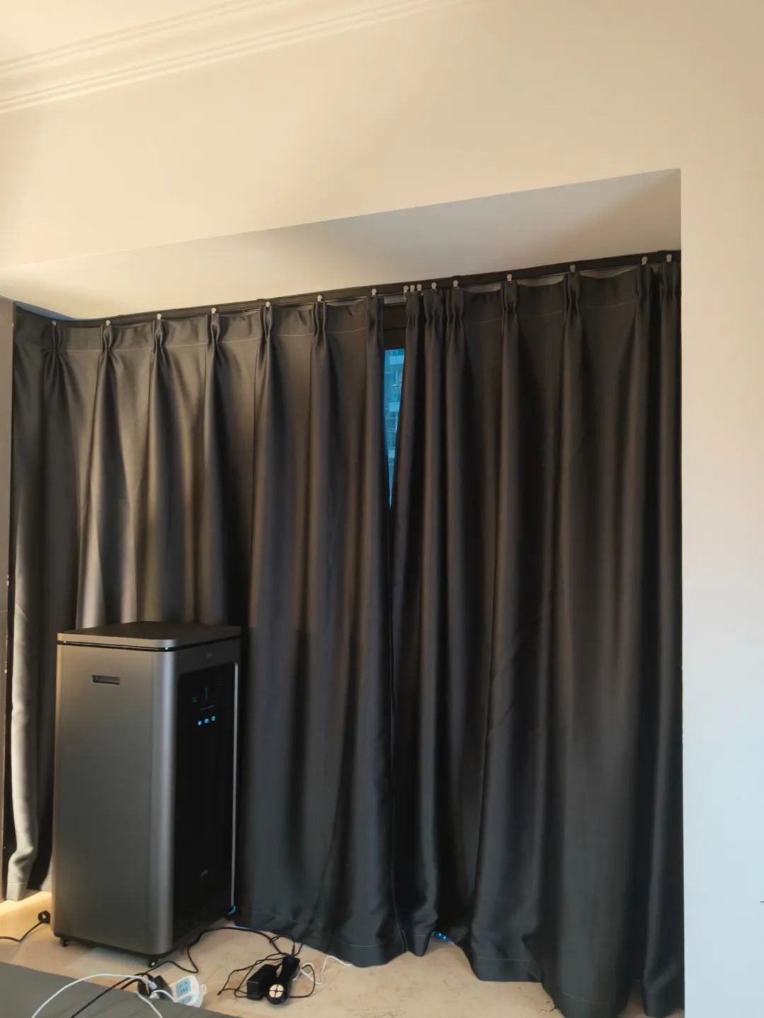 吴硕所租住房间内的窗帘。(图/受访者提供)2002年,国家首次发布了《室内空气质量标准》,从物理性、化学性、生物性、放射性四个方面,对室内空气质量进行规定。其中,室内空气所含甲醛标准值为一小时均值不超0.10㎎/m⊃3;,TVOC为8小时均值不超过0.60㎎/m⊃3;。