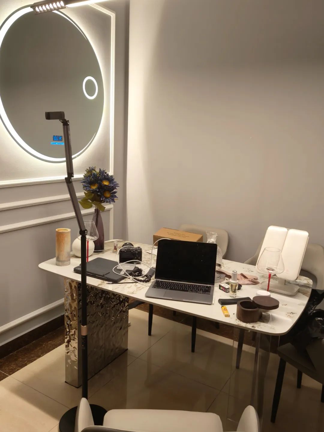 在吴硕租住的房间内,家具用廉价的皮革进行包边。(图/受访者提供)入住数日后,那些看不见的危机才蔓延:吴硕先是得了一场感冒,此后又开始没来由地咳嗽,鼻子发痒,变得嗜睡。嗜睡最严重时,他一天有2/3的时间都处于浑浑噩噩的状态,即使强撑精神拍摄视频,工作间隙也控制不住地头晕。