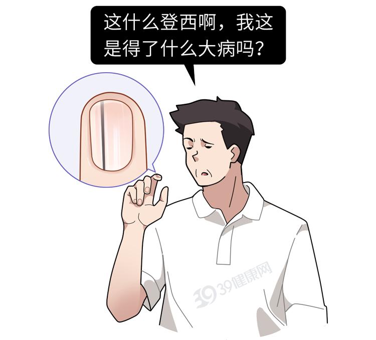 最近,30岁的小王有点发愁。1个月前,他发现自己指甲上长了一条黑线,以为是用黑笔不小心蹭上去的,洗了大半天才知道,原来黑线是长在指甲盖里的。