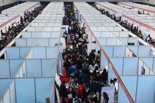 2019年3月10日,西安,前来应聘大学生与用人单位进行双向选择洽谈获得稳定工作,就能让父母尽早挺直被生活压弯的腰。很多平平无奇的二本学校,本科生的直接就业率都能超过80%,比清北都高出了近60个百分点。