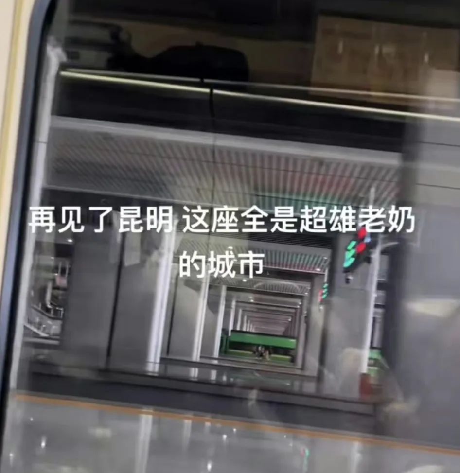 事情的起源是一位网友发了一条视频,配文:“再见了昆明,这座全是超雄老奶的城市。”