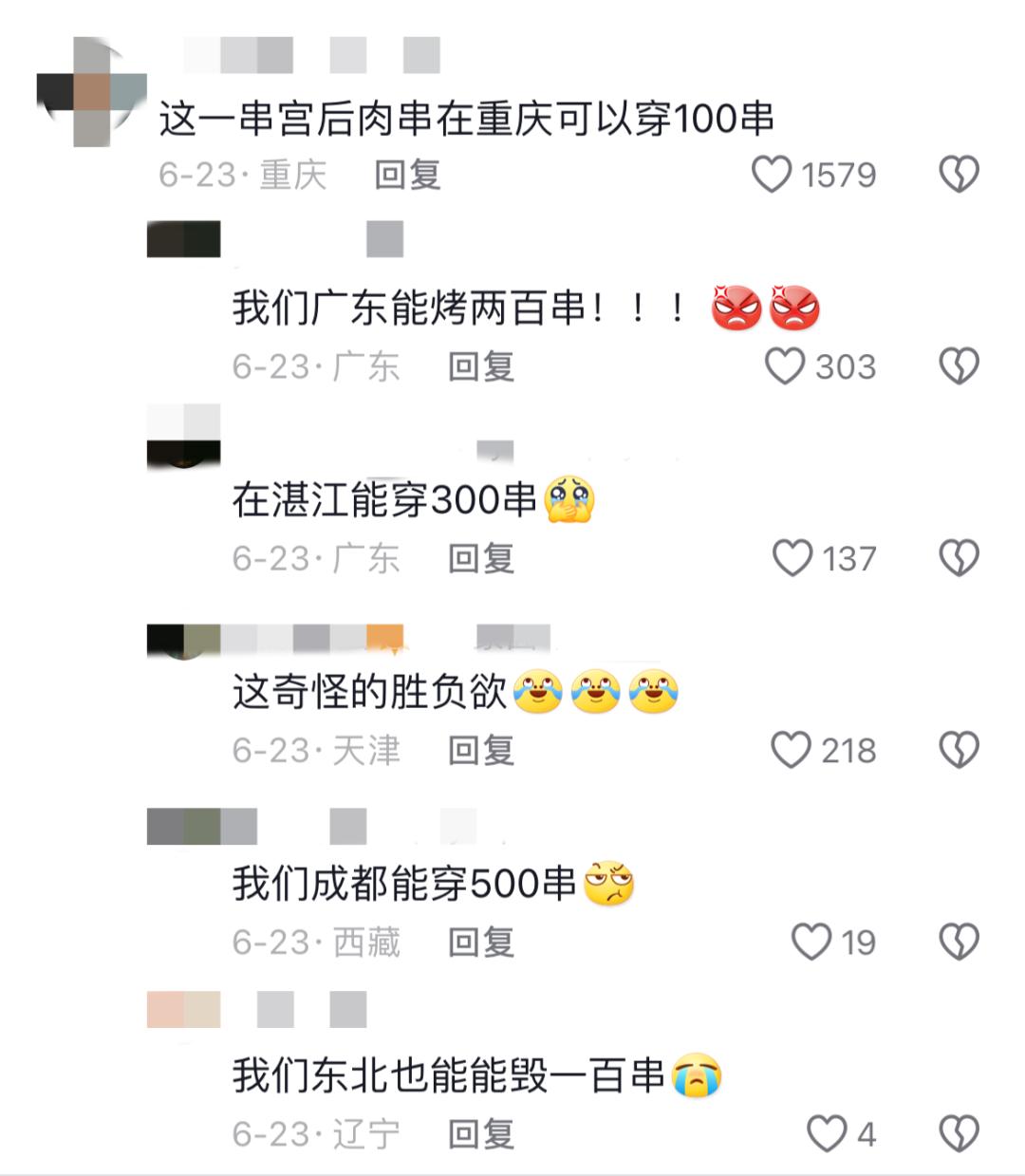 图源 @张睿Ray更有鬼才,在齐齐哈尔探店博主的视频下计算起了“一串齐齐哈尔宫后夹肉串,可以兑换出多少串南方小串?”的汇率换算题,惹得众人纷纷出谋献策,继上海人有自己的沪币,广西人有自己的十元三斤后,创造出了全新的“烤串兑换率学”……