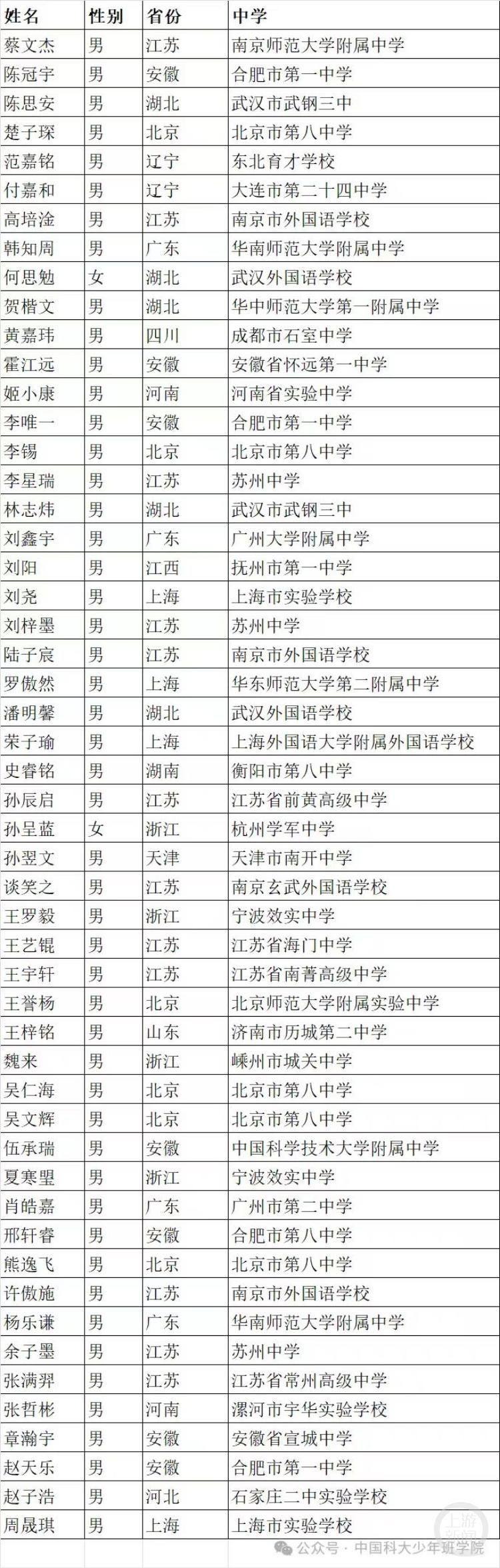 中科大少年班录取名单。 图据中科大少年班学院微信公众号值得注意的是,今年的考生中,有位12岁的“小孩哥”(网络词汇,指“年纪小但是能力强的人”)引人关注,他就是来自上海市实验学校的初三学生刘尧。刘尧此前通过了中科大少年班的校测考试,提前拿到了“高考体验券”,他的高考成绩只要达到相应要求,即可被中科大录取。