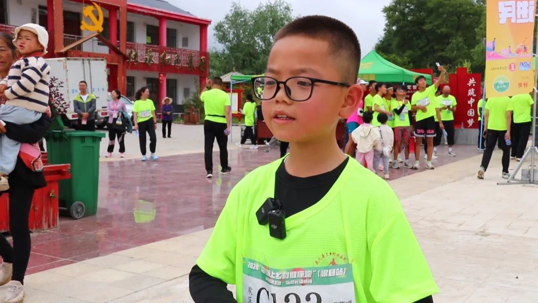 参赛选手 高尚:我今年九岁,今天参加了欢乐跑,虽然很累,但是我也坚持到了终点。