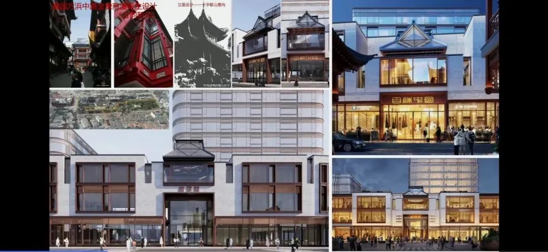 最近完成的豫园方浜中路金豫商厦再生设计,对豫园历史环境的建控地段进行了批判性品质提升,把豫园、城隍庙和豫园商城的歇山顶造型,以及豫园周边历史上的黛瓦粉墙风貌,以现代的方式进行表达。