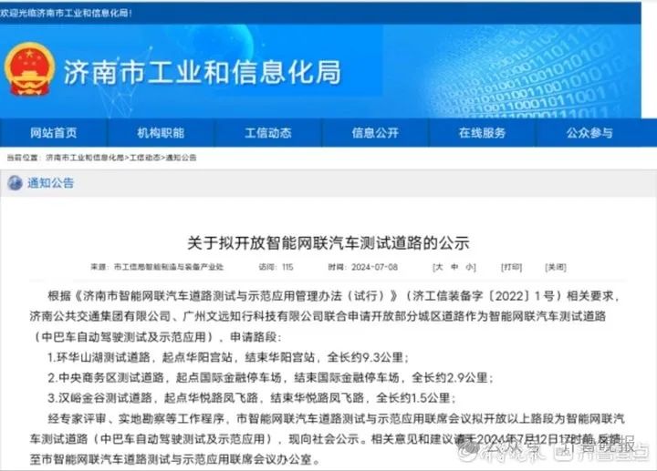 经专家评审、实地勘察等工作程序,济南市智能网联汽车道路测试与示范应用联席会议拟开放以上路段为智能网联汽车测试道路(中巴车自动驾驶测试及示范应用)。