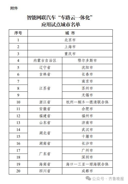 相关报道:五部门公布智能网联汽车“车路云一体化”应用试点城市名单