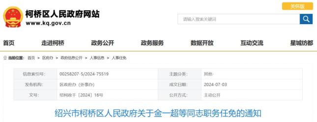绍兴市柯桥区人民政府关于金一超等同志职务任免的通知