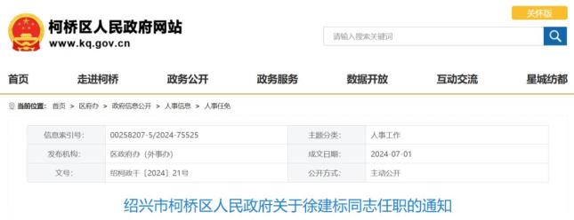 近日,绍兴市柯桥区人民政府网发布二则人事信息。