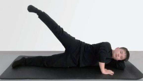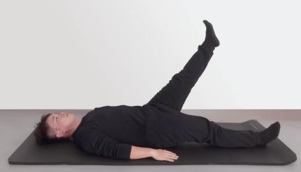 侧卧直腿抬高动作要领:侧卧位,下腿弯曲,上腿伸直抬高,左右侧交替进行。