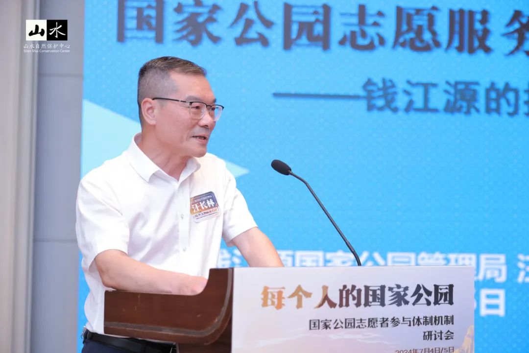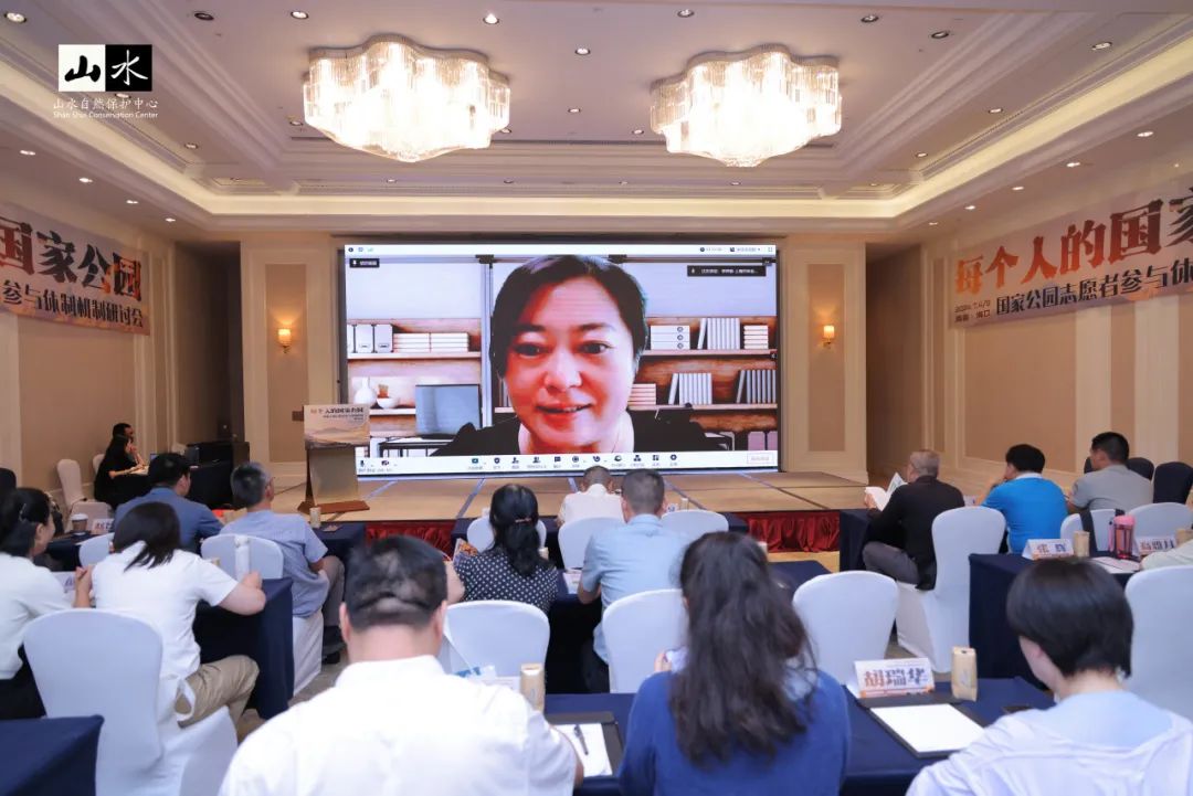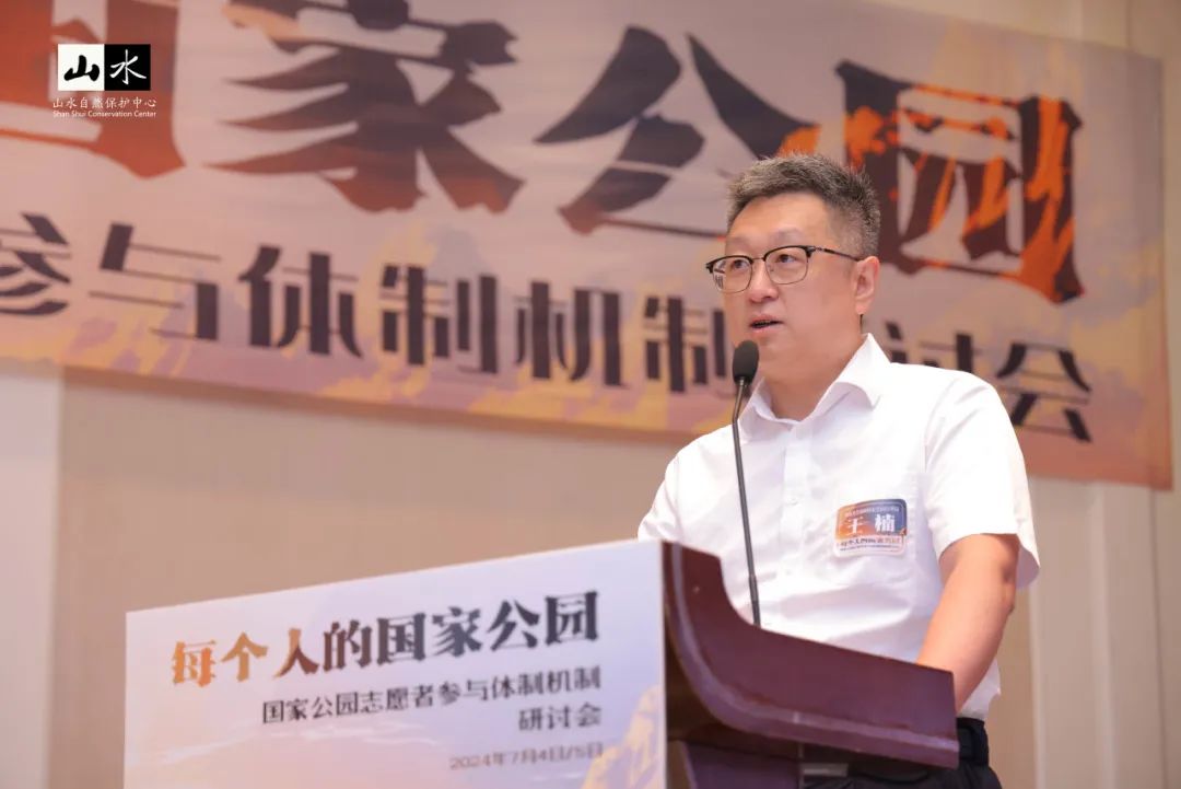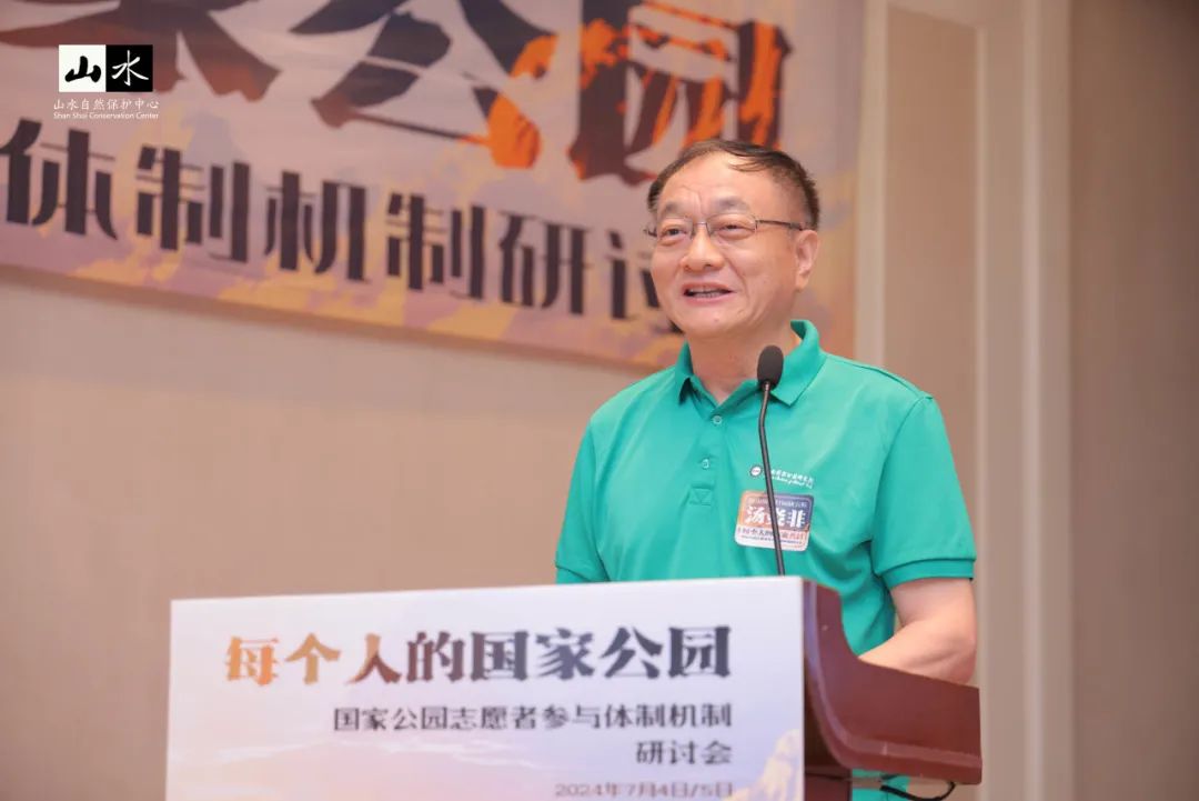 王楠、汤炎非作开幕致辞清华大学国家公园研究院院长、清华大学教授杨锐以“每个人的国家公园”为题进行主旨发言,并发布了由清华大学国家公园研究院和山水自然保护中心联合编撰的《中国国家公园志愿者体系报告(摘要版)》