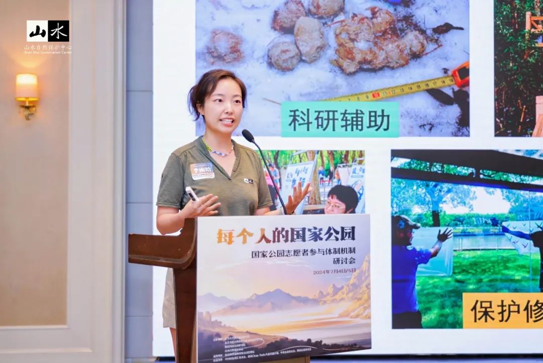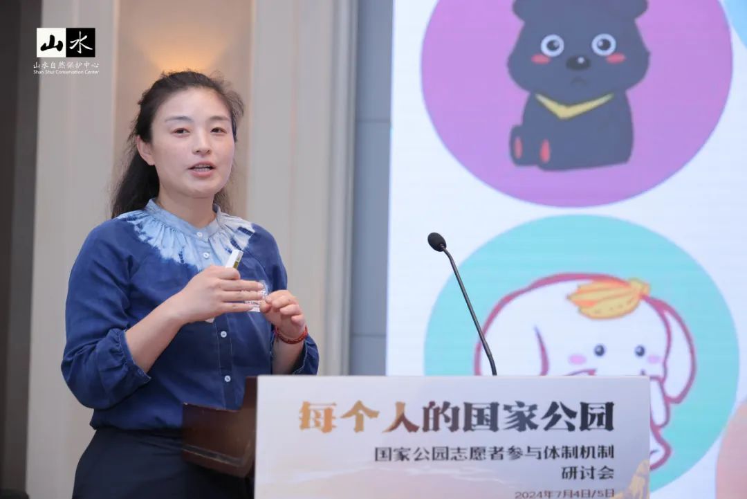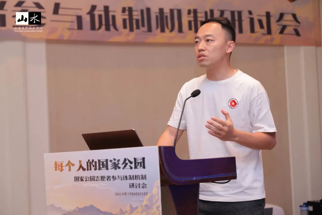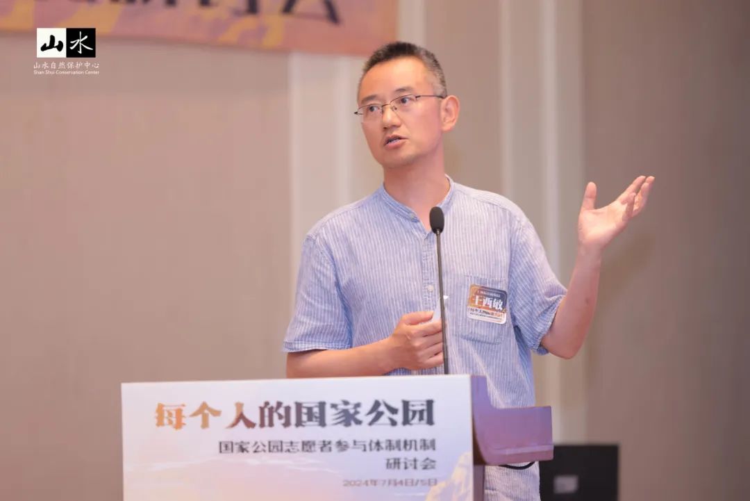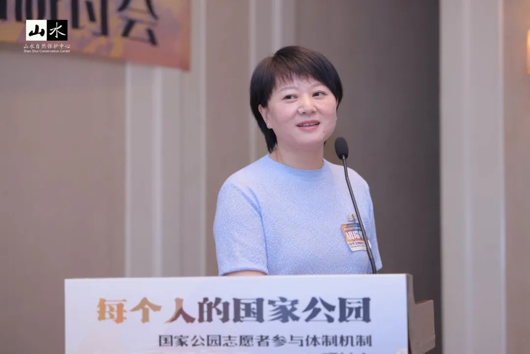 三江源国家公园管理局党委委员、副局长孙立军介绍了三江源国家公园在志愿者参与方面的积极探索,包括创建以当地农牧民为主体的民间生态保护协会,实施“三江源·沁源行动”项目,有效动员了社区力量参与生态保护;在全球环境基金(GEF)项目的资助下,在黄河源和澜沧江源开展生态保护实践类、科普宣传类志愿者工作;与绿色江河、山水自然保护中心等组织的紧密合作,不仅为志愿者提供了专业培训,还共同实施了垃圾调查、野生动物监测及环境教育课程等多元化项目,进一步推动了国家公园内志愿者的参与。