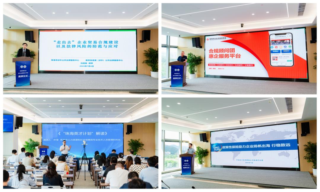 宣讲会上,涉外公共法律服务中心理事冯冠维讲解了“走出去”企业贸易合规建设的重点以及法律风险的防范与应对措施,市人力资源社会保障局专业技术人员管理科科长叶莹就“珠海英才计划”进行解读,中国信保珠海营业部项目经理徐捷分享了如何借助政策性保险降低海外投资风险,各位专家分别从法律、人才、金融等不同角度为企业家提供出海发展的“锦囊”,干货满满。
