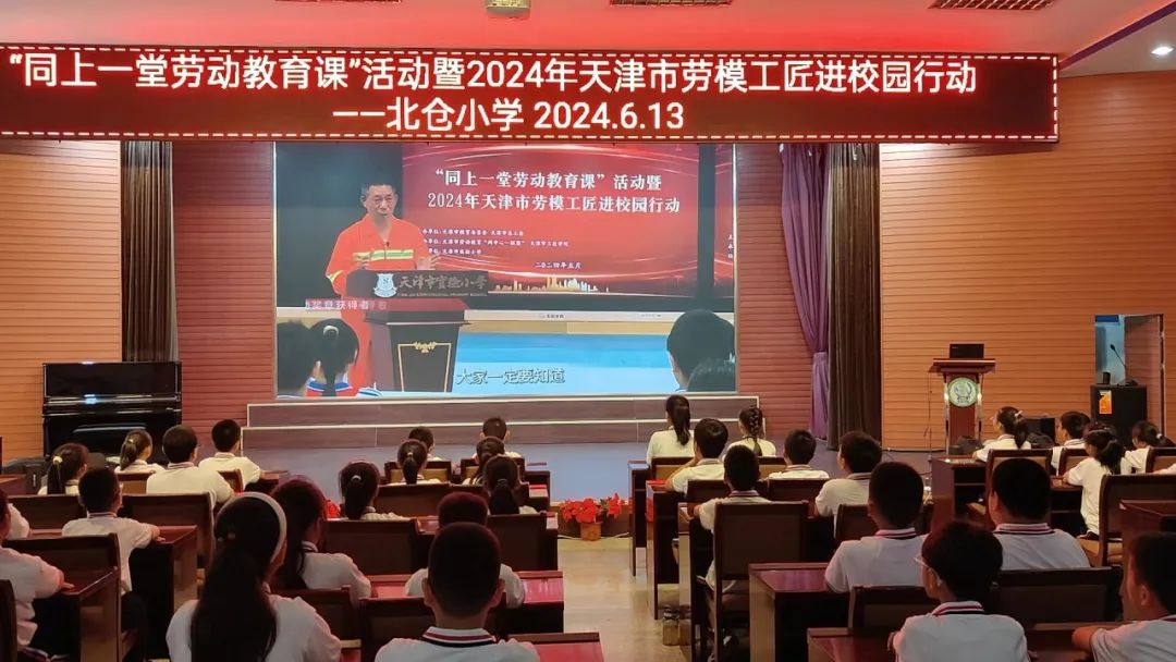 近日,由市总工会、市教委的指导,设立在我校的天津市劳动教育“两中心一联盟”、天津市工匠学院牵头组织的“同上一堂劳动教育课”活动——2024年天津市劳模工匠进校园行动圆满收官。全市1402所大中小学,充分利用劳动教育必修课时段和第二课堂、主题班会等实践活动途径,共开展24612场播讲活动,共计140万余名大中小学学生获益。