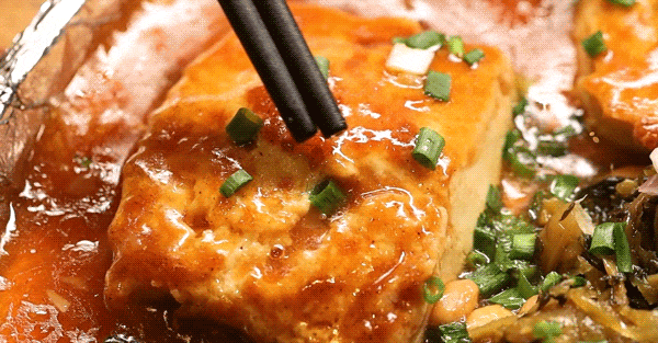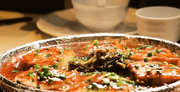 客家酿煎豆腐,用的是嫩到发颤的鸡蛋豆腐,中间塞了肉馅,放酸菜和普宁豆酱一同在铁板上焗,用茶油煎至金黄。吃起来细滑清香,配上酱汁也是下饭神器。