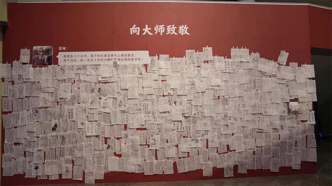 在“赤子雄鹰·纪念李苦禅先生诞辰125周年艺术展”的展览现场,有一面充满温情与感动、正能量满满的留言墙。这是观众对苦禅先生最深情的表白,是跨越历史长河与大师的对话与交流。