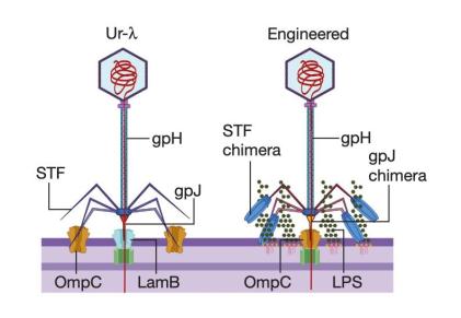 为了提高肠道环境中的递送效率,研究团队设计了λ噬菌体尾部的多个嵌合变体以靶向不同的受体。