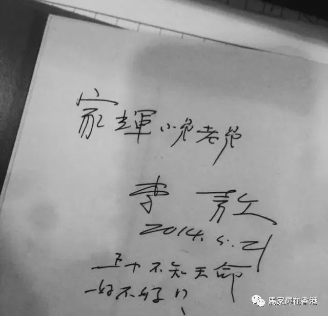 马家辉与李敖,下图为79岁李敖写给51岁马家辉的赠言