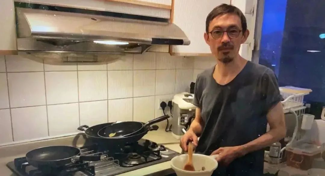 在家中给女儿做饭的马家辉