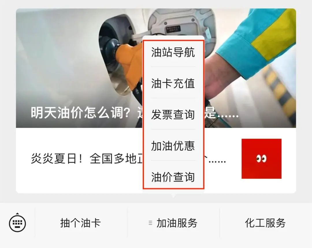 在服务菜单中选择【加油服务】